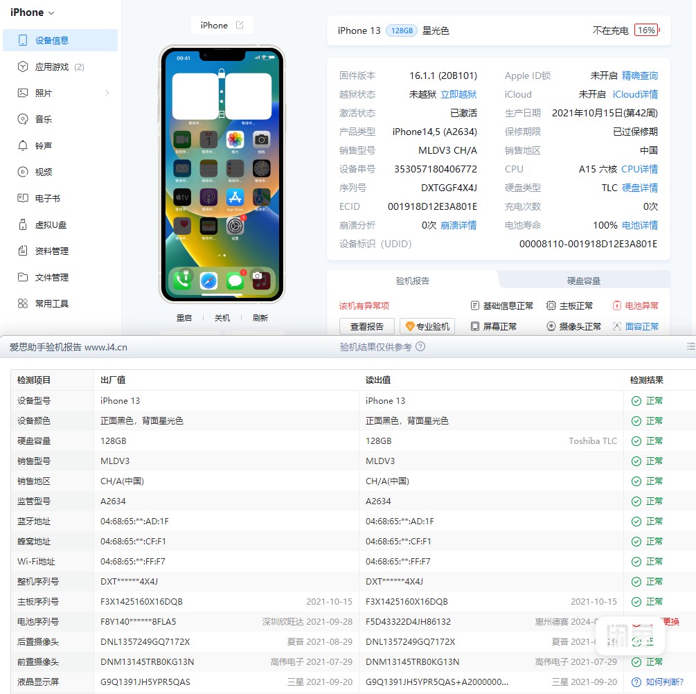 used and original iphone 13 128GB white 95% battery healthy